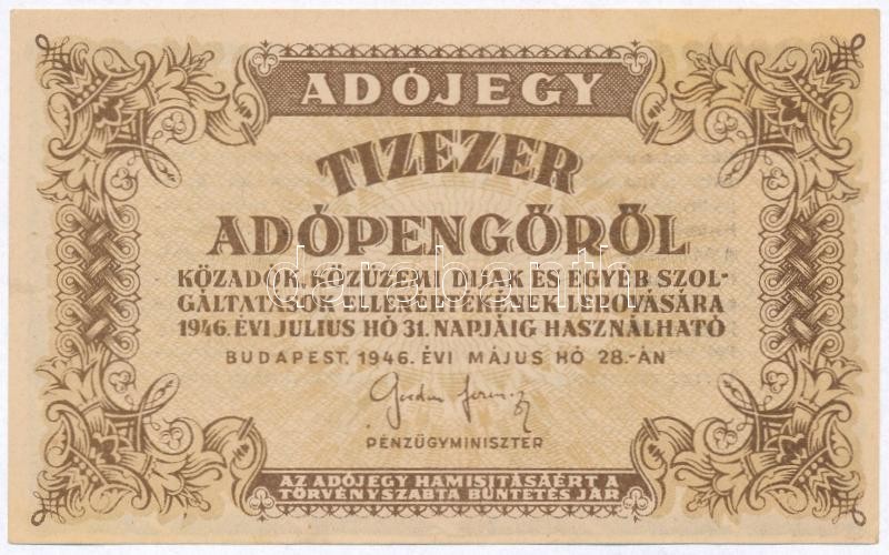 1946. 10.000AP vízjeles papíron, sorszám nélkül T:I