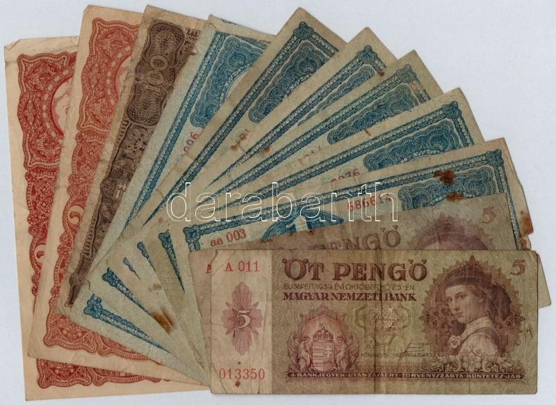 https://www.darabanth.com/en/314-Online-auction/314.0/Numismatics/Hungarian-Banknotes~500006/Vegyes-11db-os-nagyreszt-korona-bankjegy-tetel-kozte-keves-pengo-TIII-III-~II1723188