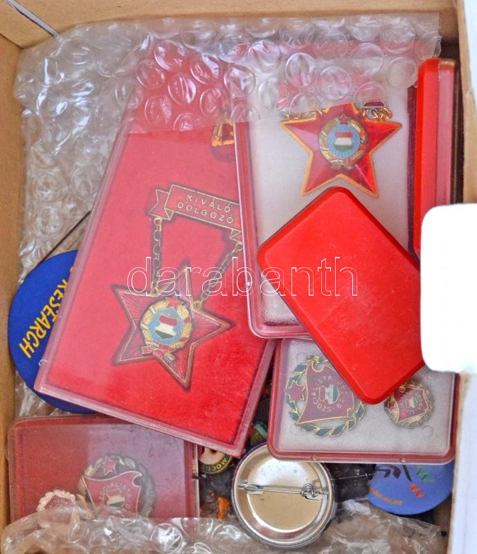 https://www.darabanth.com/en/314-Online-auction/314.0/Numismatics/Mixed-banknote-and-coin-lots~500018/Kis-doboznyi-vegyes-jelveny-kituzo-es-kituntetes-tetel-foleg-a-szocializmus-idoszakabol~II1724671