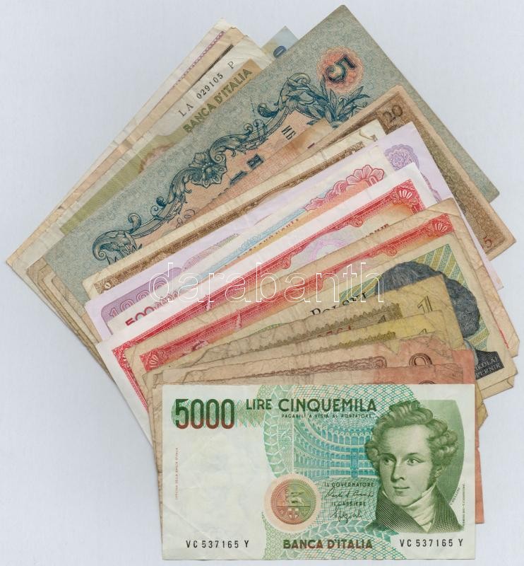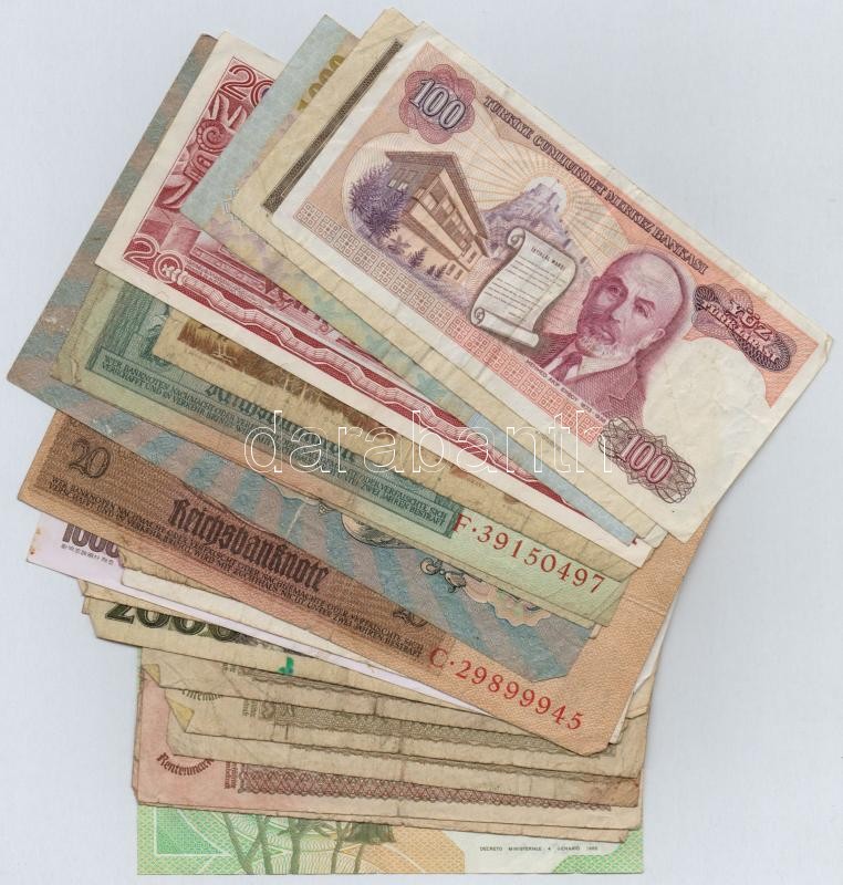 30db-os vegyes külföldi bankjegy tétel, közte Csehszlovákia, Jugoszlávia, Mexikó, Olaszország, Weimari Köztársaság T:III,III- 30pcs of various banknotes, including Czechoslovakia, Yugoslavia, Mexico, Italy, Weimar Republic C:F,VG