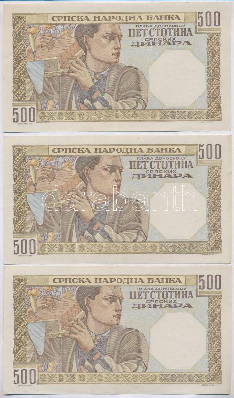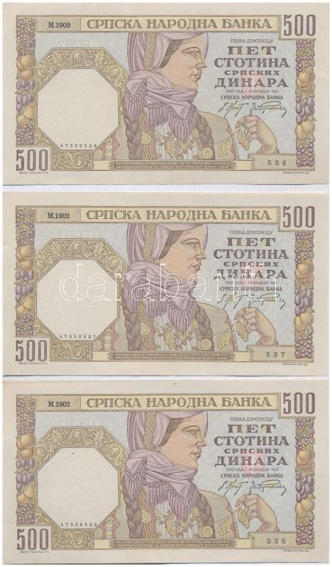 Serbia / German occupation 1941. 500 Dinara (3x) sequential serials C:XF
