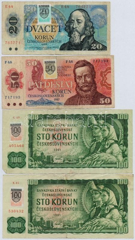 Szlovákia 1993. (1961) 100K (2x) + (1987) 50K + (1988) 20K mindegyik szlovák bélyeggel T:III,III-