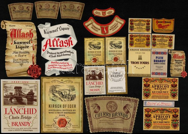cca 1950-1960 24 db Monimpex exportra gyártott italcímke, különböző méretben