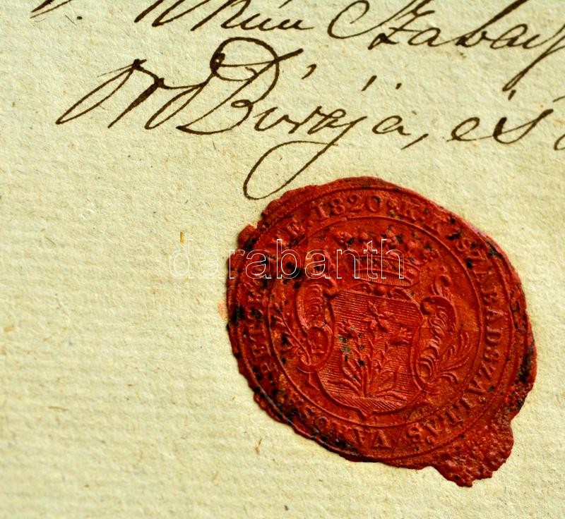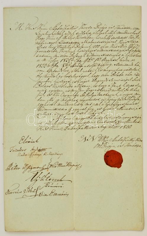 1830 Kiskunszabadszállás város szerződése Kunszentmiklósi árenda tárgyában. A városi elöljárók aláírásával és a város címeres pecsétjéve