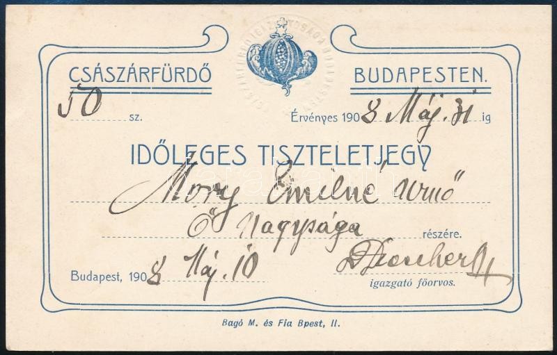 https://www.darabanth.com/en/314-Online-auction/314.0/Other-collectibles/Documents~100016/1908-Budapest-Csaszarfurdo-Idoleges-tiszteletjegy-szarazpecsettel-Bago-M-es-Fia-8x12-~II1723208