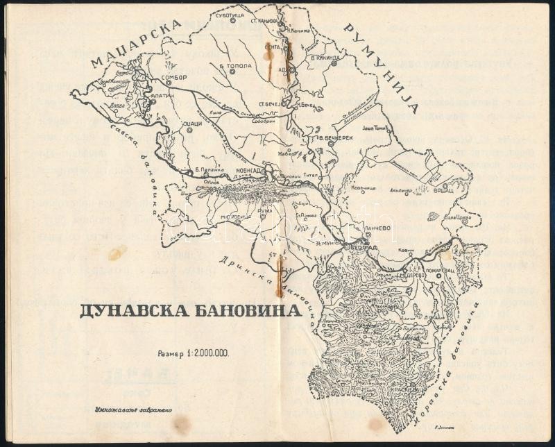 1937 Jugoszláv leckekönyv a dunai bánság (banovinva) térképével, illus...