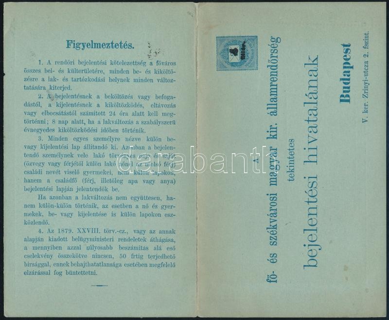 cca 1890 Rendőrségi kijelentési lap, díjjeggyel, használatlan
