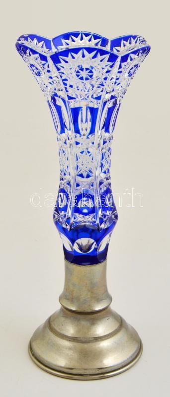 Csiszolt kétrétegű ólomkristály váza, alpakka talppal, hibátlan, jelzé...