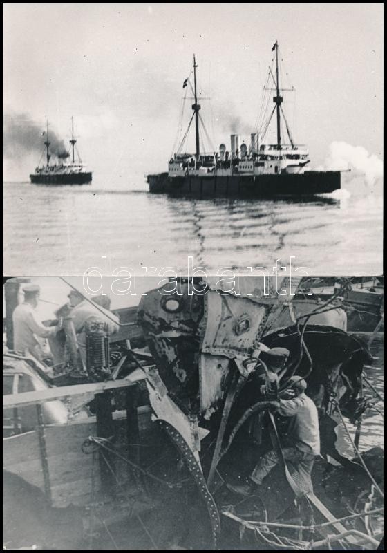 3 db I. világháborús hadihajókat ábrázoló régi fotó modern nagyítása: Kaiserin Elisabeth, Csepel, SMB ...18x12 cm