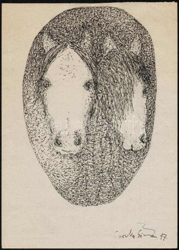 https://www.darabanth.com/en/314-Online-auction/314.0/Other-collectibles/Paintings-and-graphics~100001/Csorba-Simon-Laszlo-1943-Lovak-Tus-papir-jelzett-33x24-cm~II1721477