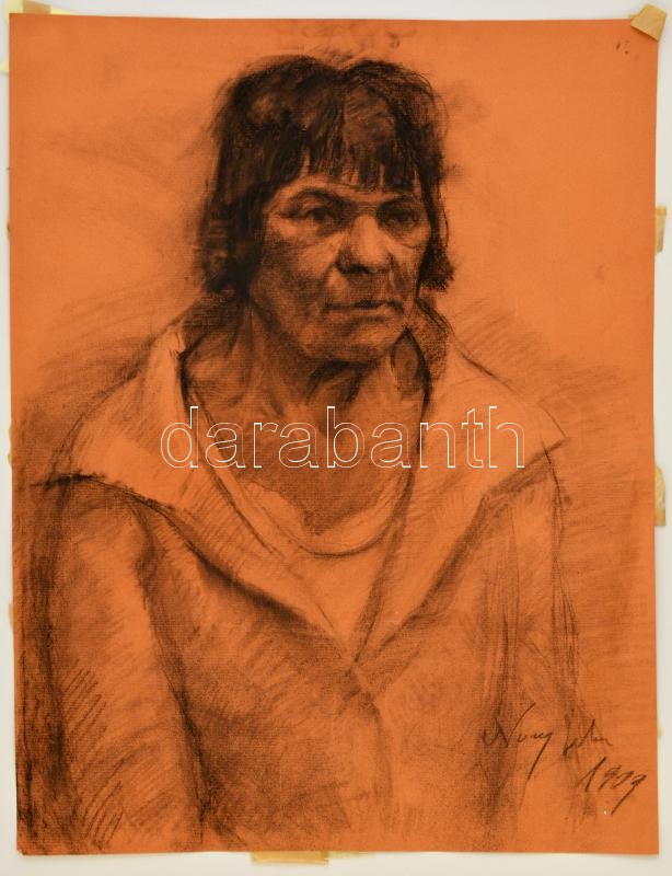 Nagy jelzéssel: Portré, szén, papír, 65×50 cm