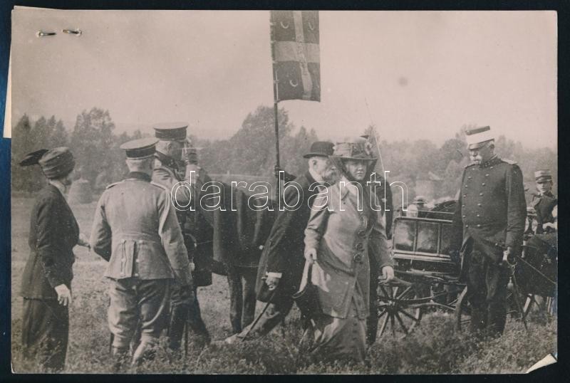 Description: 1914 I. Vilma holland királynő hadgyakorlaton, Le Meester tábornok, korabeli sajtófotó hozzátűzött szöveggel, 12x16 cm / Wilhelmina of the Netherlands at military exercise, press photo, 12x16 cm
