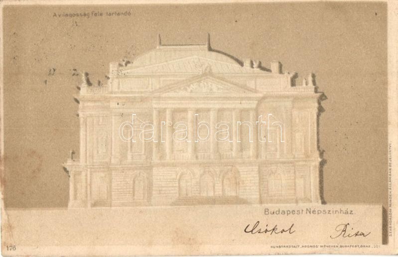 1899 Budapest VIII. Népszínház. Kunstanstalt Kosmos No. 176. fény felé...