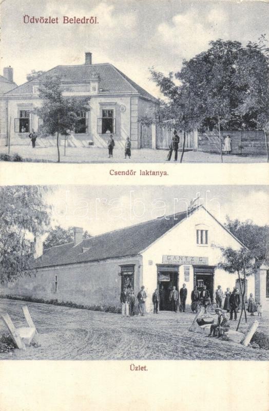 Beled, Csendőr laktanya, Gantz G. üzlete, kerékpár. Goczán Ferenc kiadása (EK)