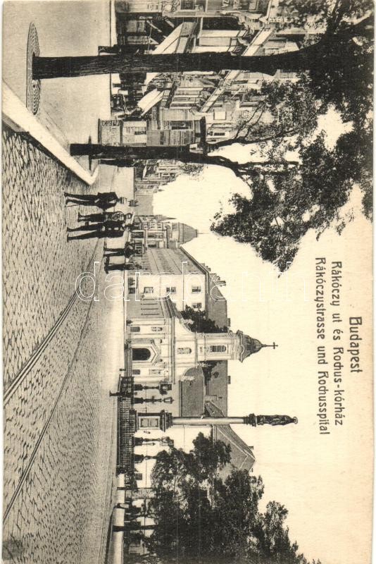 Budapest VIII. Rákóczi út, Rókus kórház, villamos, hirdetőoszlop. SLB. No. 68.