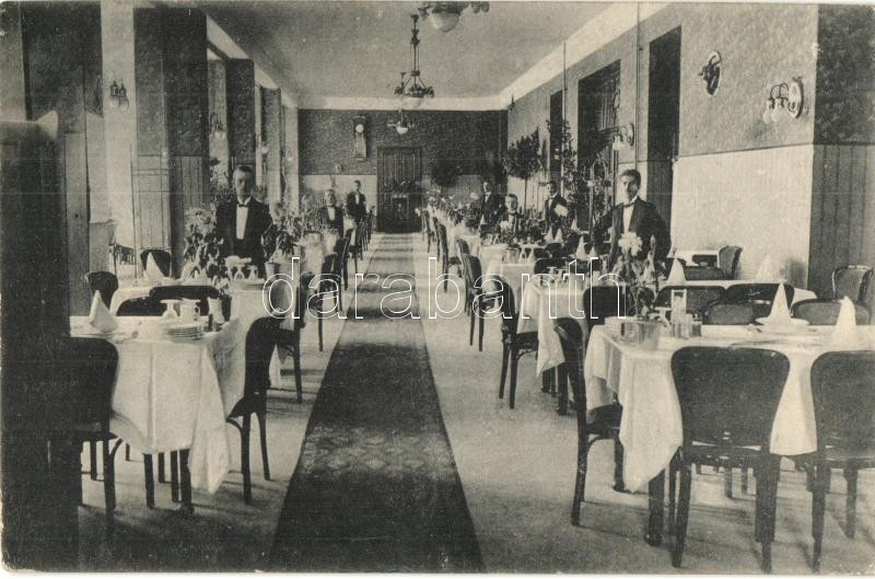Debrecen, Arany Bika szálloda és étterem, belső. A képen szereplő pincére levele a hátoldalon. Takács Vince fényképész