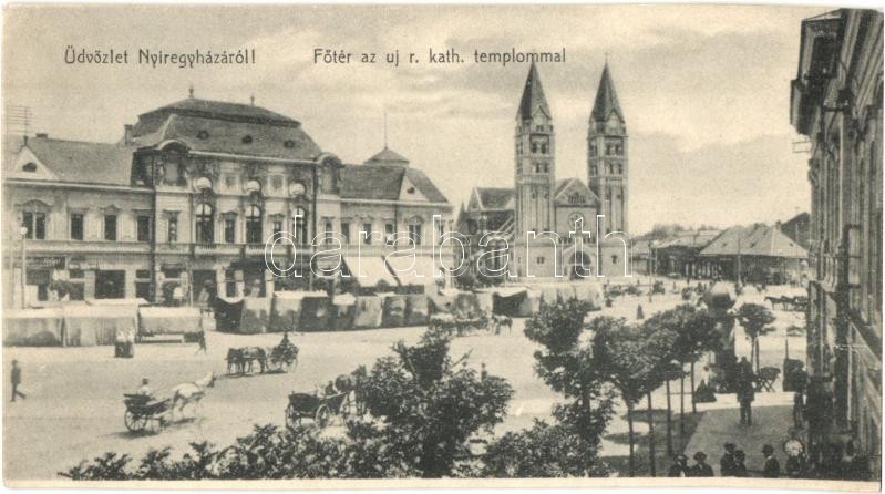 Nyíregyháza, Fő tér, Római katolikus templom, piac. Piringer János kia...