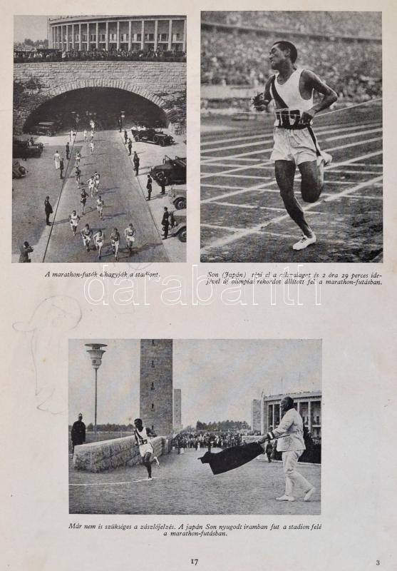 Pluhár István: A berlini olimpia. Bp., 1936, Marjay Frigyes. Megviselt, sérült vászonkötésben.gerince hiányzik, kijáró lapokkal.