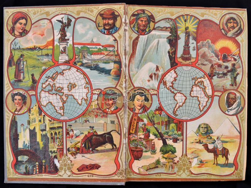 Barátosi Balogh Benedek: Séta a világ körül. Szerk.--. Bp.,(1907),Magyar Kereskedelmi Közlöny, 480 p. Gazdagon illusztrálva, képekkel, térképpel, litho elülső szennylappal. Kiadói, díszes, aranyozott, festett, dombornyomásos egészvászon kötésben, kissé kopott, kissé foltos szecessziós borítóval.