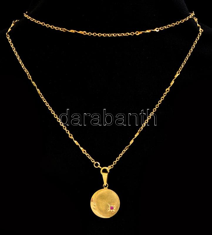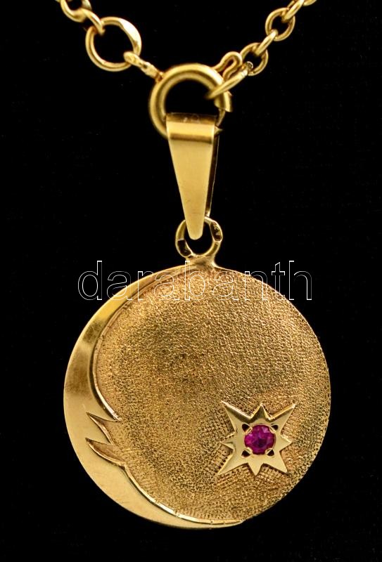 Arany (Au) nyaklánc medállal, szintetikus kővel, 14K, jelzett (P. V.), nettó: 10,4 g