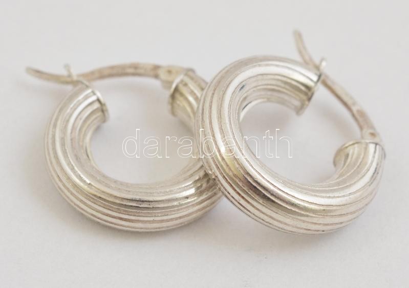 Ezüst(Ag) bordázott fülbevalópár, jelzett, d: 1,8 cm, nettó: 4,4 g