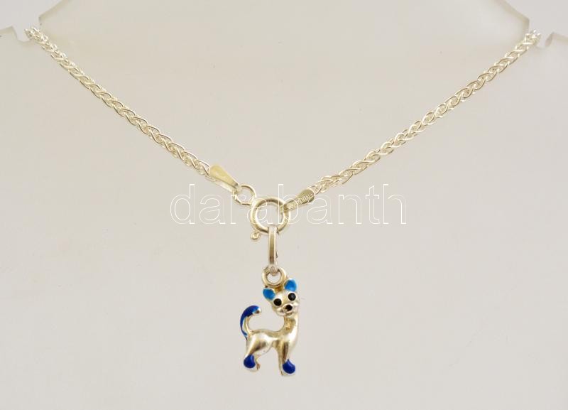Ezüst(Ag) fantáziaszemes karkötő, zománcozott cicás függővel, jelzett,...