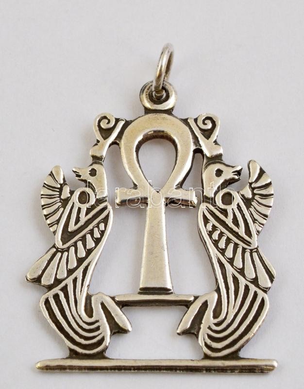 Ezüst(Ag) kopt kereszt függő angyalokkal, jelzett, 3,4x4,5 cm, nettó: 8,9 g