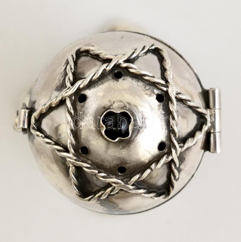 Ezüst(Ag) psumintartó, Dávid-csillaggal, kő berakással, jelzett, m: 7,5 cm, bruttó: 43,3 g