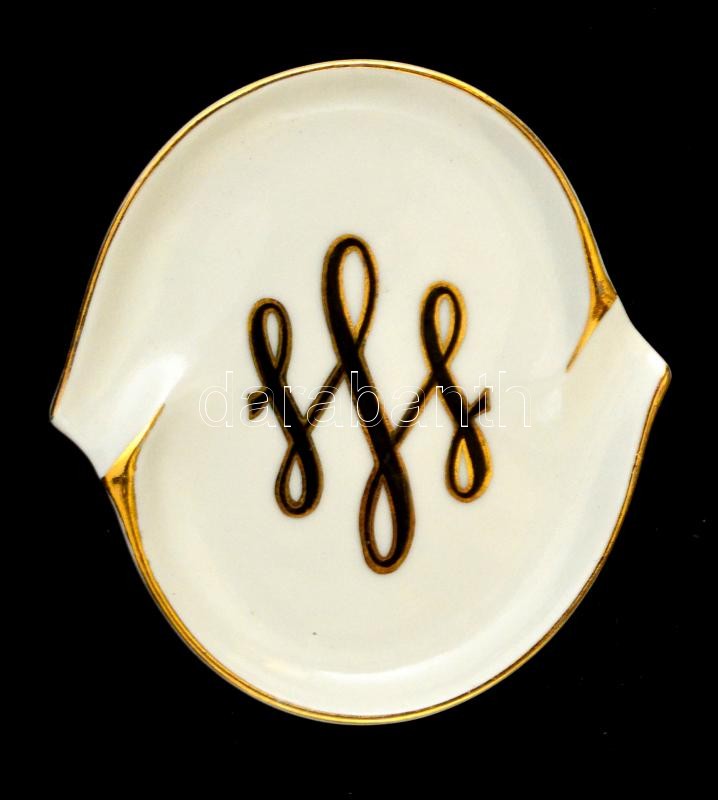 Aquincum tálka és fogpiszkálótartó monogrammal, kézzel festett, jelzet...