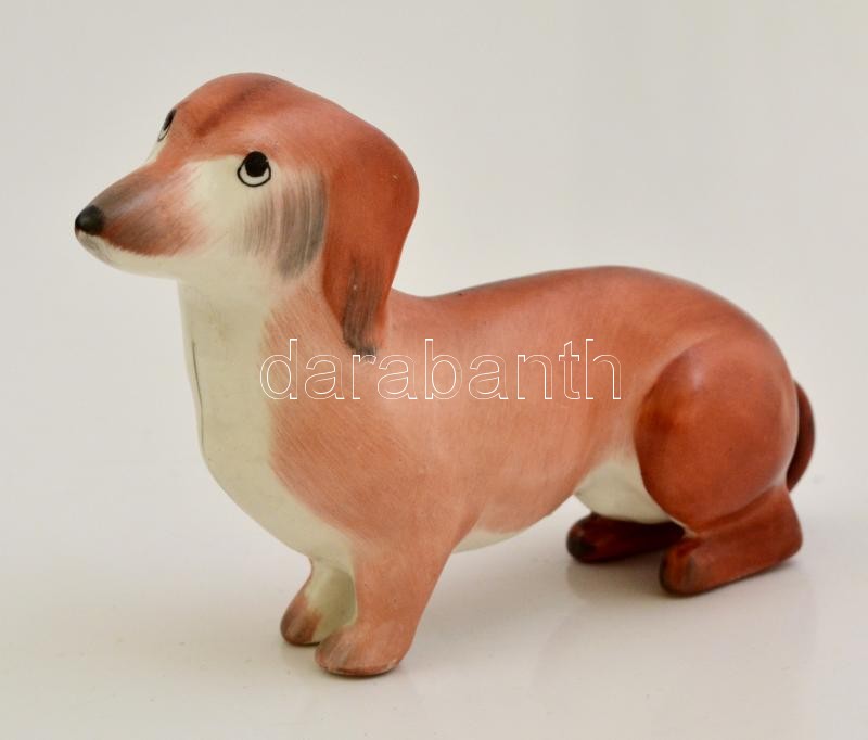 Aquincumi tacskó, kézzel festett, jelzett, kopott, h:10,5 cm