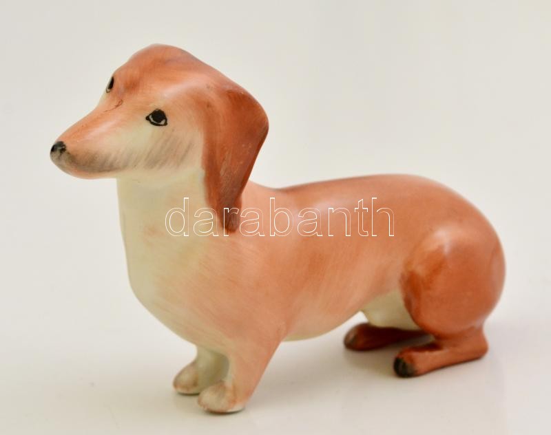 Aquincumi tacskó, kézzel festett, jelzett, kopott, h:10,5 cm
