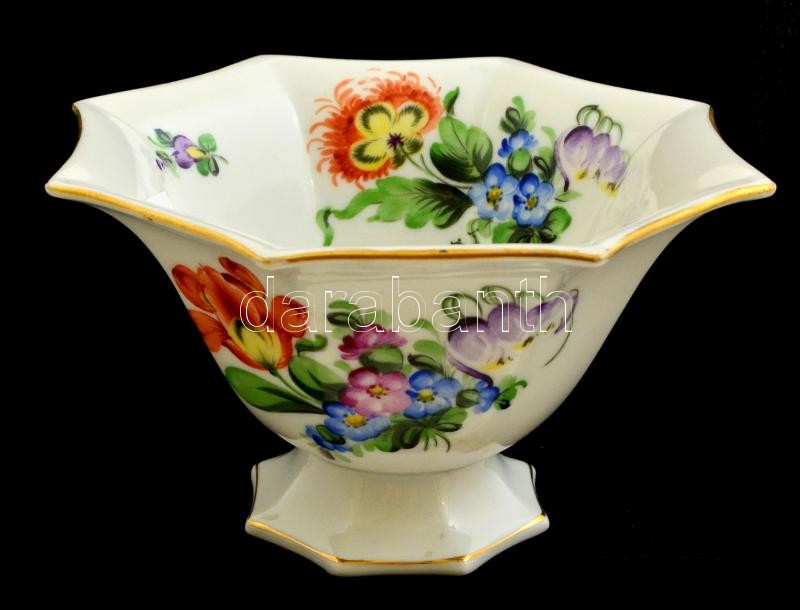 Herendi virág mintás váza, kézzel festett, hibátlan, jelzett, m:8,5 cm, d:15,5 cm