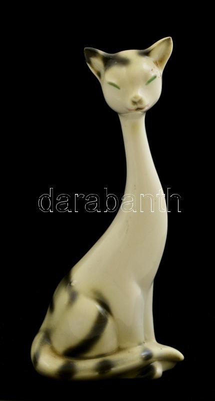 Hosszú nyakú cica, jelzés nélkül, kézzel festett, apó máz hibával, m:1...