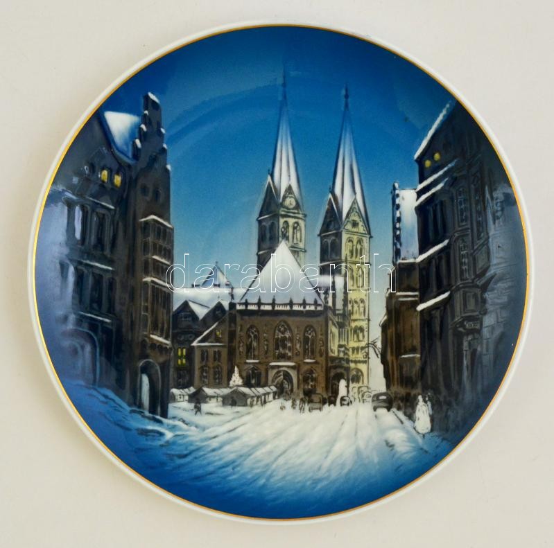 Rosenthal városképes dísztányér, kézzel festett, jelzett, kis kopásokkal, d: 22,5 cm