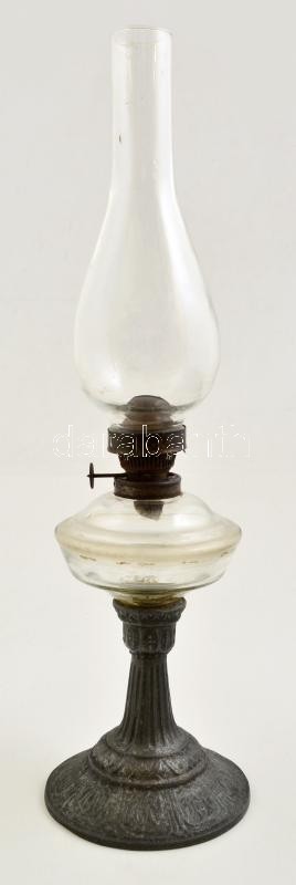 Lampart régi petróleumlámpa, fém-üveg testtel, jelzett, m: 42 cm