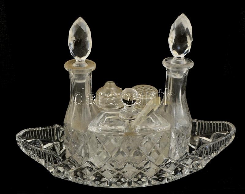 Üveg fűszer-olaj-sótartó szett, formába öntött, kis kopásokkal, m: 15 ...