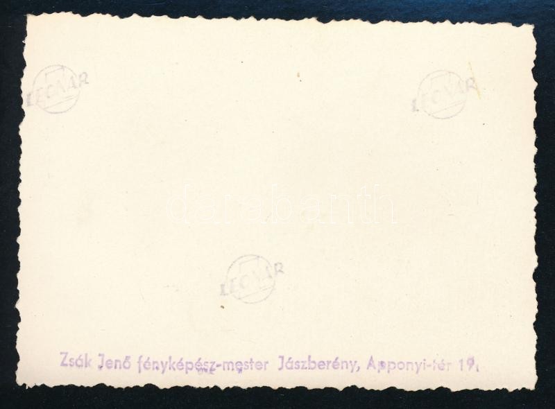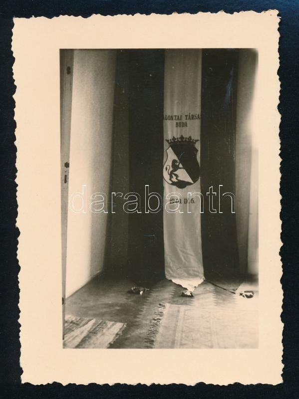 Description: 1940 A Magyarországi Nagyszalontai Társaság által Nagyszalontának adományozandó országzászló egyik oldala, jászberényi Zsák Jenő fényképész-mester pecséttel jelzett fotója, 8,5x6 cm