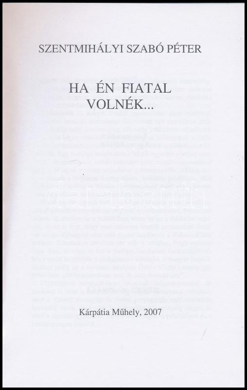 Szentmihályi Szabó Péter: Ha én fiatal volnék... H.n., 2007, Kárpátia ...