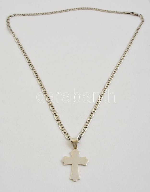 Ezüst(Ag) pálcikás nyaklánc, kereszt függővel, jelzett, h: 56 cm, 2,2x2,3 cm, nettó: 16,