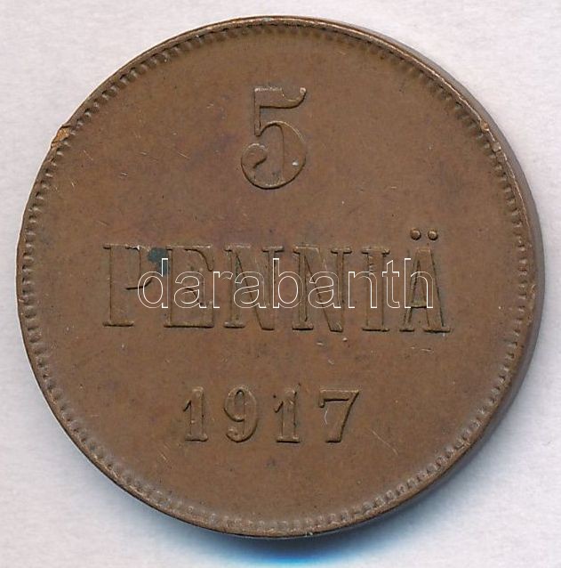 https://www.darabanth.com/en/316-Online-auction/316.0/Numismatics/Worldwide-silver-and-metal-coins~2000012/Finnorszag-1917-5p-Cu-T2--Finland-1917-5-Pennia-Cu-CXF~II1731292