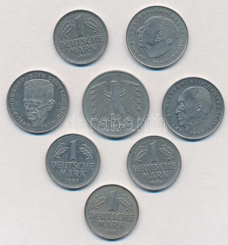 FRG 1950-1989. 1 Mark (4xdiff) + 2 Mark (3xdiff) + 5 Mark C:XF