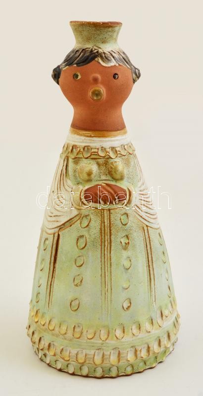 Kiss Roóz Ilona (1920-2010): Női figura, mázas kerámia, jelzett, apró ...