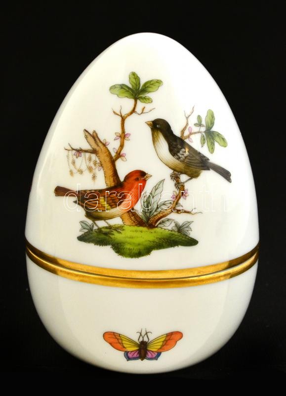 Herendi Rotschild mintás tojás dobozka, kézzel festett, jelzett, hibátlan, m:10 cm