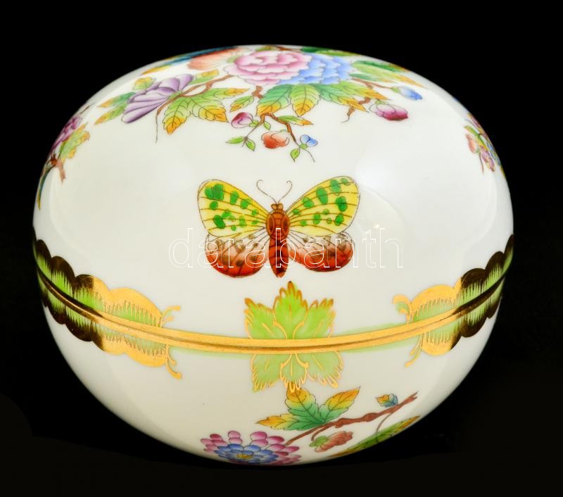 Herendi Viktória mintás porcelán bonbonier, kézzel festett, jelzett, h...