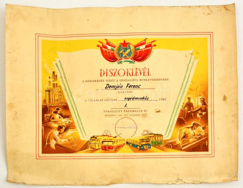 https://www.darabanth.com/en/316-Online-auction/316.0/Other-collectibles/Documents~16/1950-Segedmunkas-diszoklevel-hajtott~II1737792