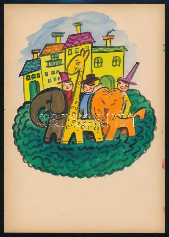 1941 Róna Emy (1904-1988): Illusztráció az Játékország c. könyvhöz. Akvarell, papír, jelzés nélkül, 24x17 cm