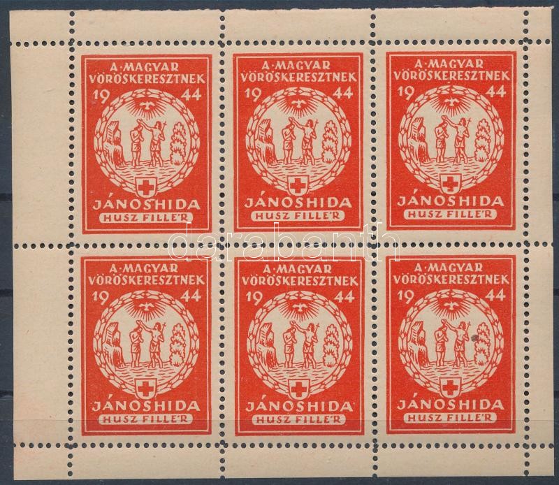 1944 A Magyar Vöröskeresztnek - Jánoshida 20f adománybélyeg kisív (6é)