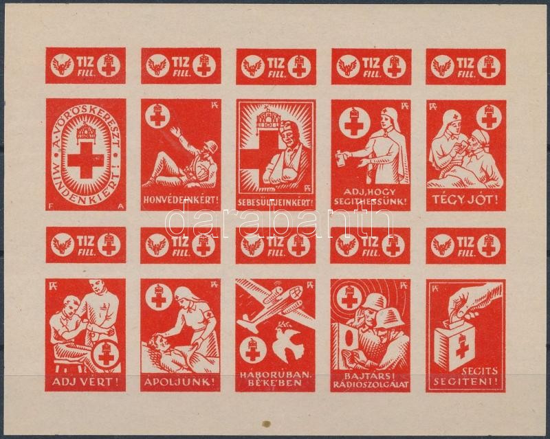 ~1942 Vöröskereszt vágott 10f adománybélyeg 10-es kisív