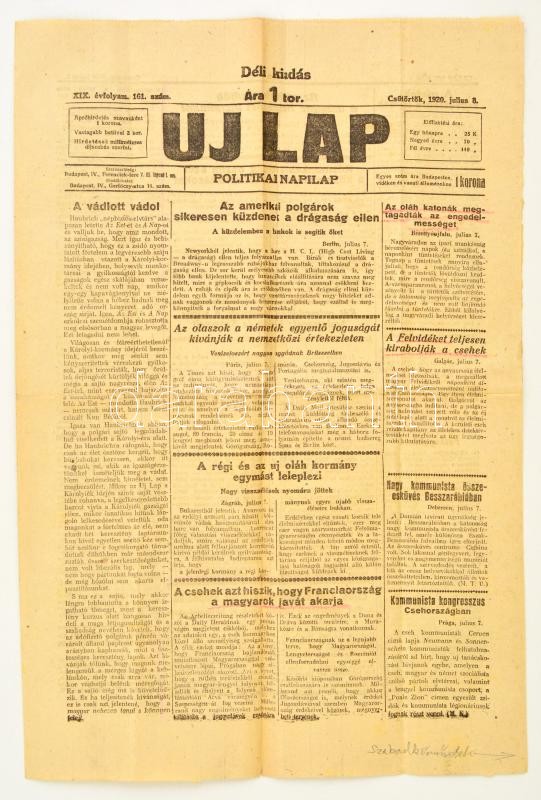 https://www.darabanth.com/en/316-Online-auction/316.0/Other-collectibles/Printed-Materials~27/1920-Uj-Lap-Politikai-Napilap-XIX-evfolyam-161-szam~II1737055