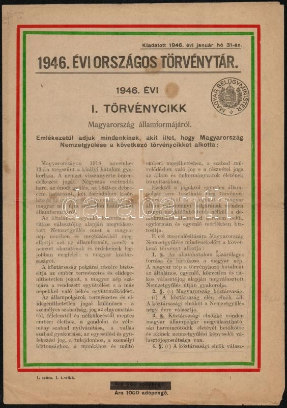 1946 Bp., 1946. évi országos törvénytár I. törvénycikk